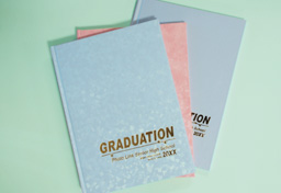生地に金箔押し表紙は、金文字部分に130ミリ×50ミリまでと大きさの上限がございますが、十分に学校名とタイトル文字が入ります。